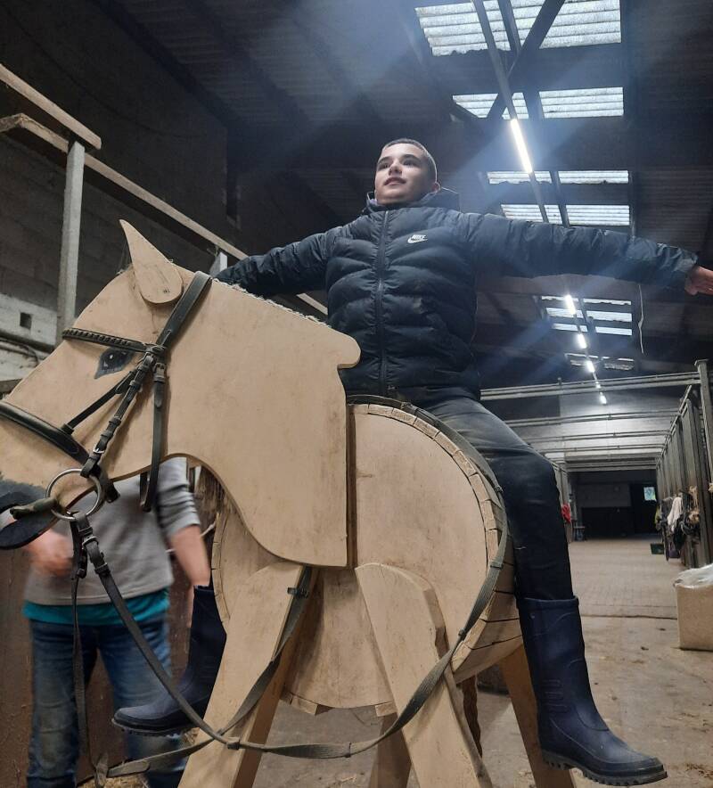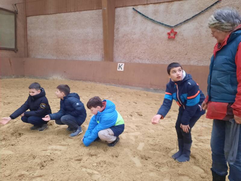 Wir starten wie immer mit dem Kennenlernen des Hofes und der Dinge, die für die Pferdehaltung unerlässlich sind. Die Kinder lernen verschiedene Arten des Futters und der Einstreu kennen und beginnen sich die Namen der unterschiedlichen Gebrauchsgegenstände (z.B. Führstrick, Wurzelbürste, Kardätsche) zu merken.
