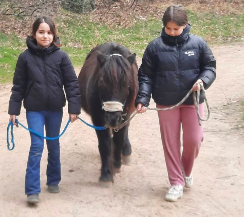 Nach dem gemeinsamen Mittagessen verlassen wir die Schule und fahren zu Frau Hoffmanns Reiterhof auf dem Stallberg. Wir lernen den Hof und die Pferde kennen und machen uns mit den Gegebenheiten vertraut. Die Kinder erlernen u.a. das sachgerechte Putzen eines Pferdes und üben das Sitzen im Gleichgewicht auf dem Pferd.
